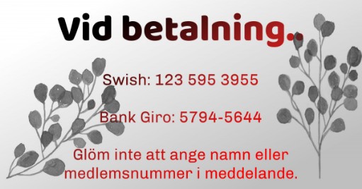 Pengarna ska vara inbetalda till klubben senast den 30 April samt val av maträtt till Eskil.